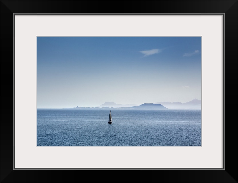 <p>Sailing boat and Fuerteventura, from Playa Blanca, Lanzarote, Canary Islands, Spain</p>