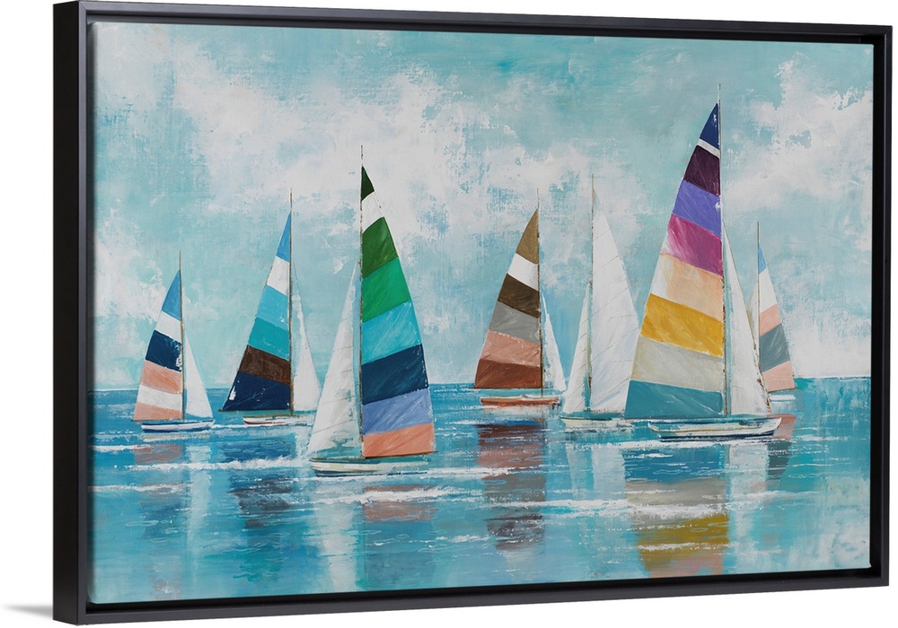 Art Coastal Blue Wall Art Contemporary Art Seascapes Painting Transportation Boat Sailboat