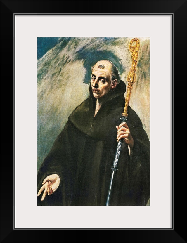 <p>Greco, Domenikos Theotokopoulos, called El (1541-1614). Saint Benedict. 1577 - 1579. Mannerism art. Oil on canvas. SPAIN. Madrid. Prado Museum. -</p>