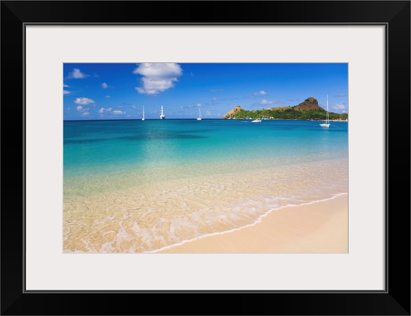 <p>Saint Lucia, Gros Islet, Rodney Bay, Reduit Beach with Pigeon Island in background.</p>