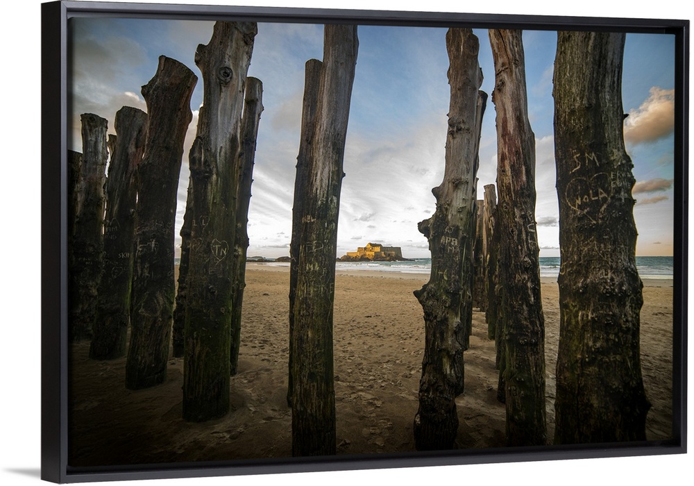 <p>Beach of Saint Malo in Brittany with the "fort national" seing through the "wood - stop waves".</p>