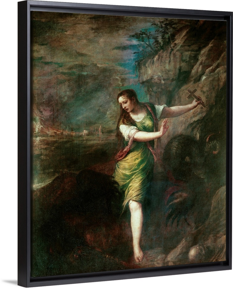 <p>TTITIA, Tiziano Vecello, also called (1490-1576). Saint Margaret. 1562. Renaissance art. Cinquecento. Oil on canvas. SPAIN. Madrid. Prado Museum. -</p>