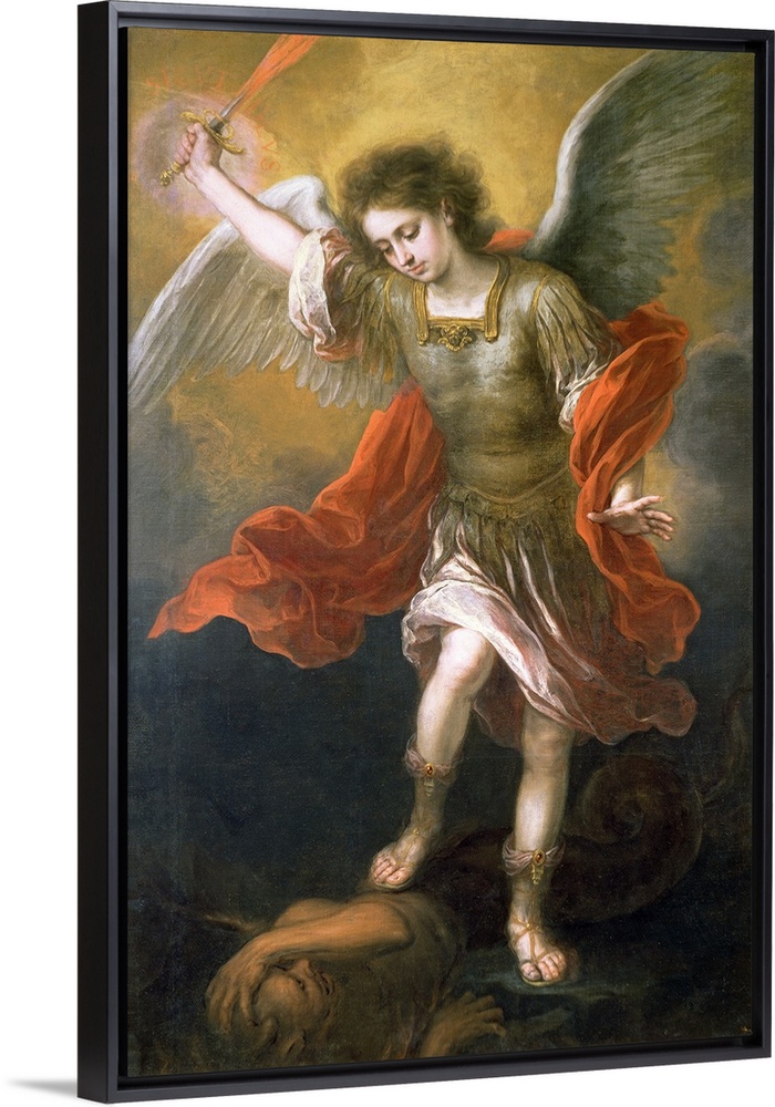 <p>XAM68661 Saint Michael banishes the devil to the abyss, 1665/68 by Murillo, Bartolome Esteban (1618-82); oil on canvas; 169.5x110. cm; Kunsthistorisches Museum, Vienna, Austria; Spanish, out of copyright</p>