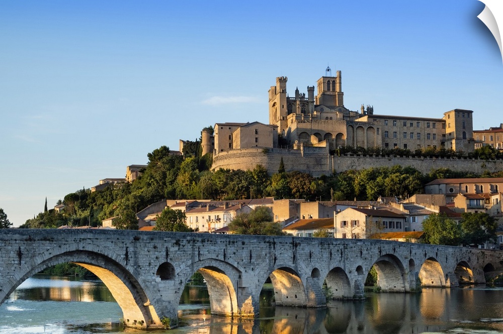 <p>Europe, France, Occitanie. Saint Nazaire church and the old bridge in the fortified town of Beziers on a bluff above the River Orb</p>