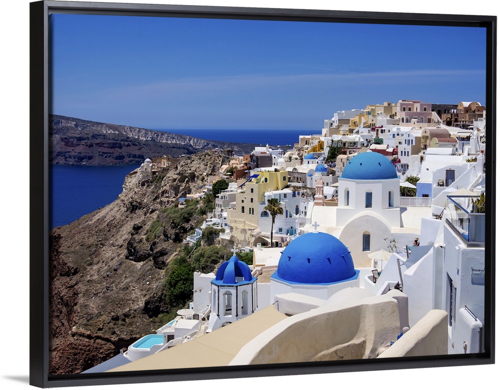 <p>Iconic blue domed churches of Saint Spyridon and Resurrection of the Lord, Oia Village, Santorini (Thira) Island, Cyclades, Greek Islands, Greece, Europe</p>