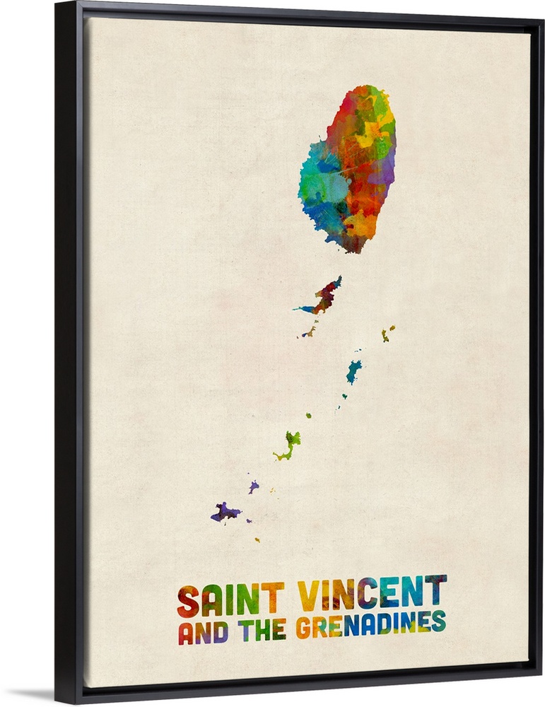 <p>A watercolor map of Saint Vincent and the Grenadines.</p>