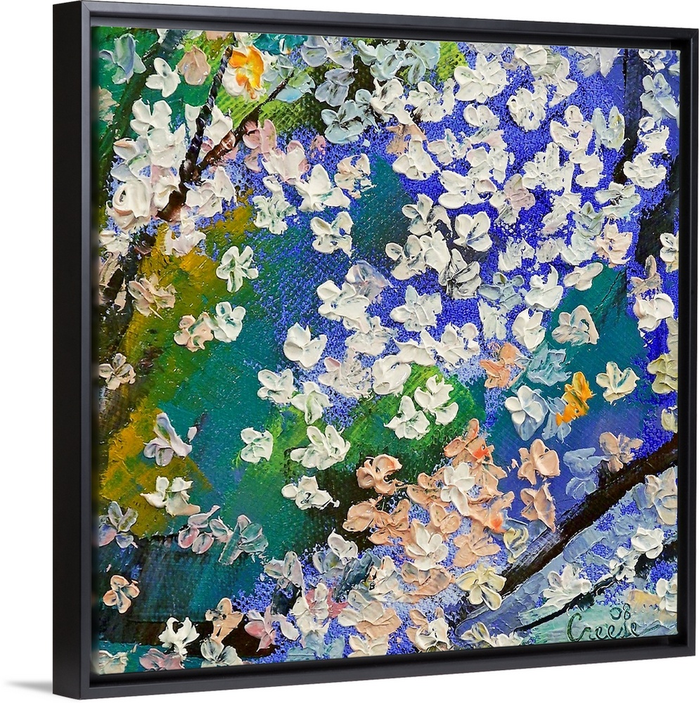 <p>An abstracting paining of tree branches with thick dabs of paint to make the floral blossoms on the canvas.</p>