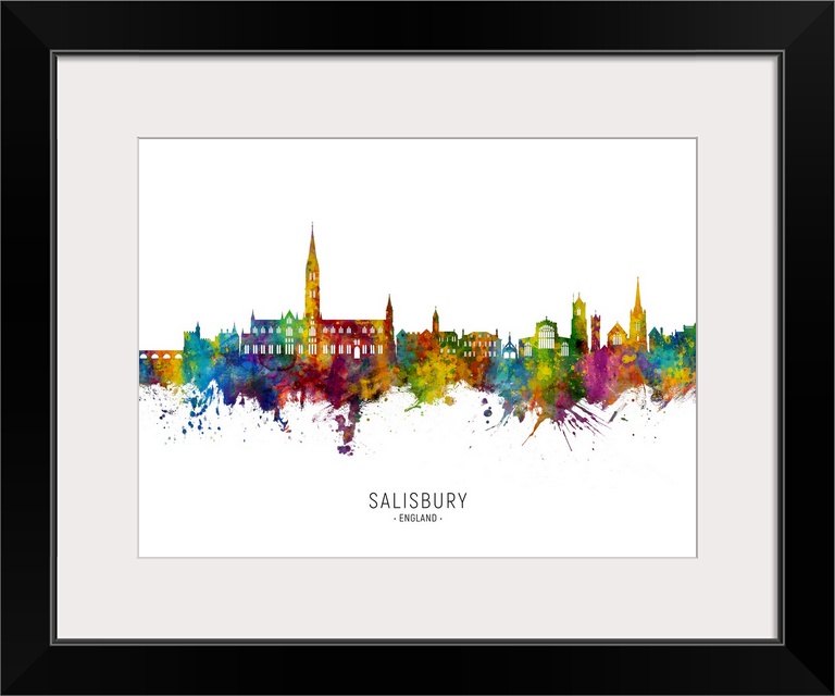 <p>Watercolor art print of the skyline of Salisbury, England, United Kingdom</p>