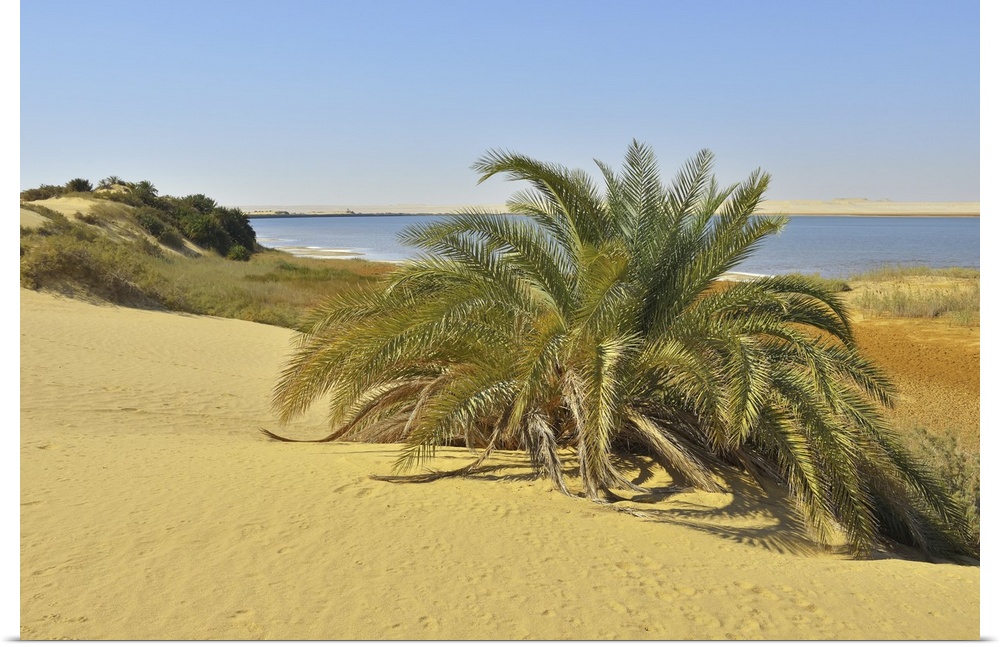 <p>Salt Lake and Date Palm in Desert, Matruh Governorate, Libyan Desert, Sahara Desert, Egypt, Africa</p>