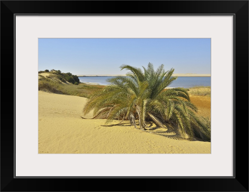 <p>Salt Lake and Date Palm in Desert, Matruh Governorate, Libyan Desert, Sahara Desert, Egypt, Africa</p>