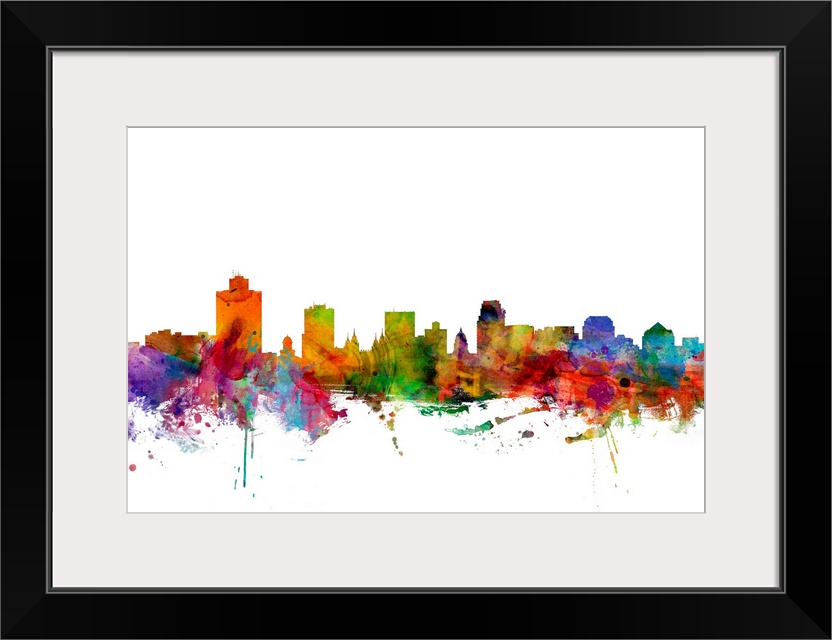 <p>Watercolor artwork of the Sat Lake City skyline against a white background.</p>
