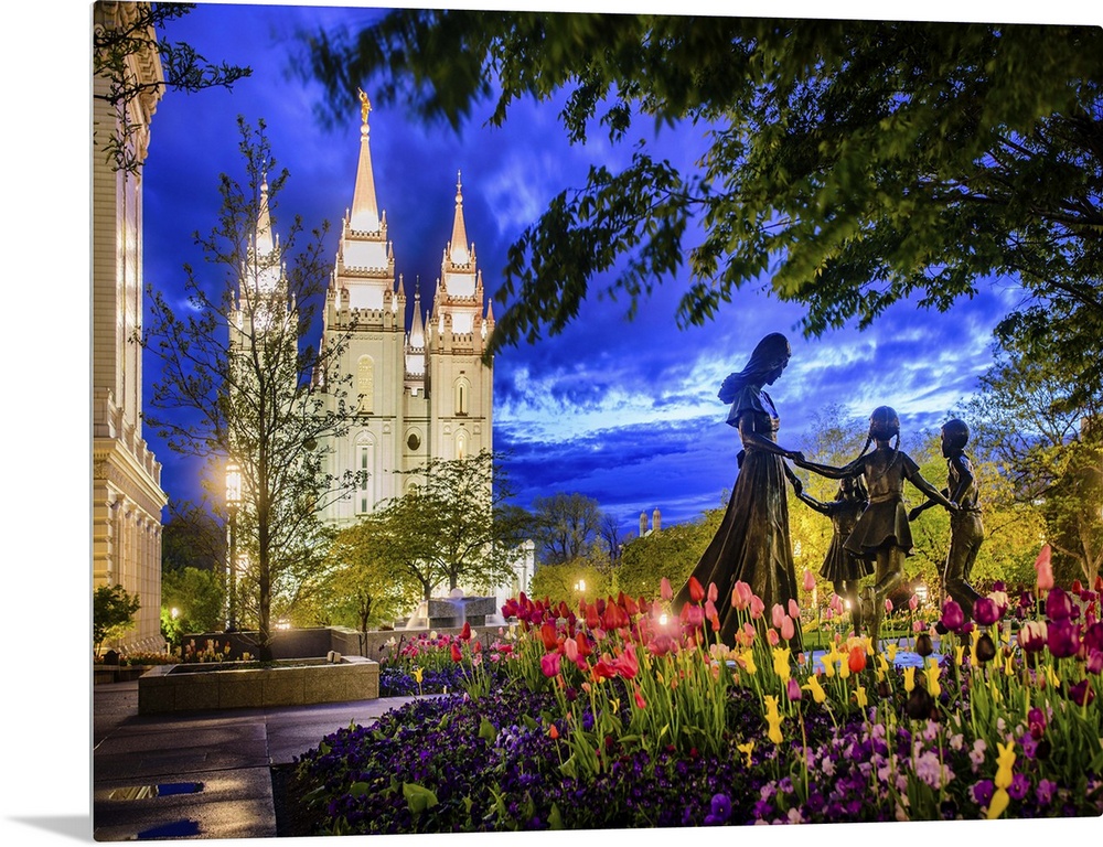 <p>The Salt Lake City Utah Temple is one of the earliest temples to be constructed. As the fourth operating temple, it is also one of the largest with a floor area of 253,000 square feet. The temple took nearly half a decade to complete. The walls measure nine feet thick and the temple is the first to feature a standing statue of the angel Moroni, which is 14 feet in height. The Salt Lake City Temple was dedicated years before Utah officially became a state.</p>