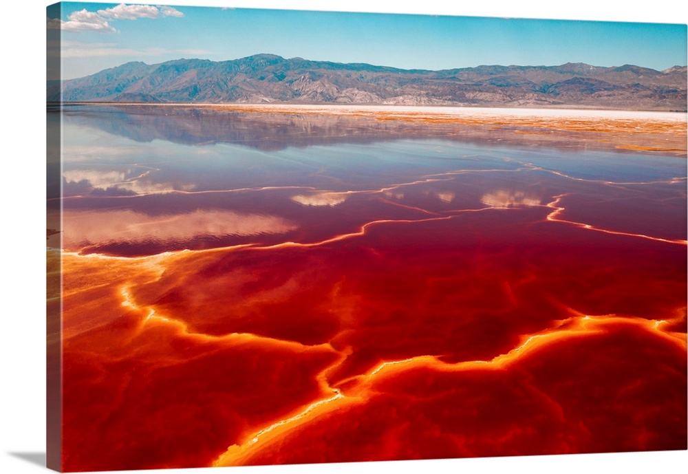 <p>Salt loving halobacteria turns a shallow salt lake bed red, Lone Pine, California, United States of America</p>