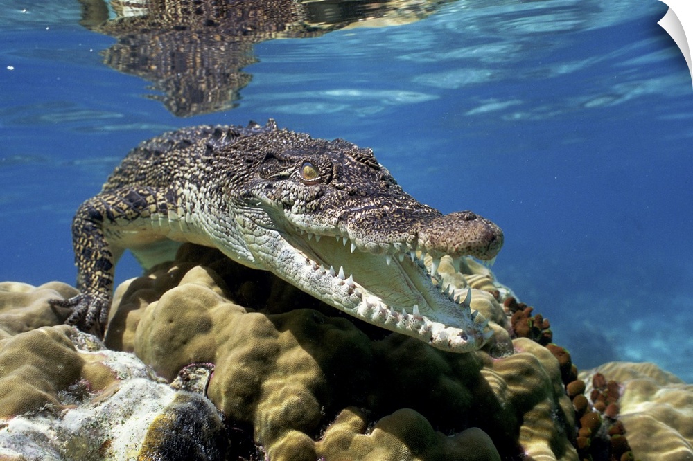 <p>Saltwater Crocodile (Crocodylus porosus) underwater, South Australia.</p>