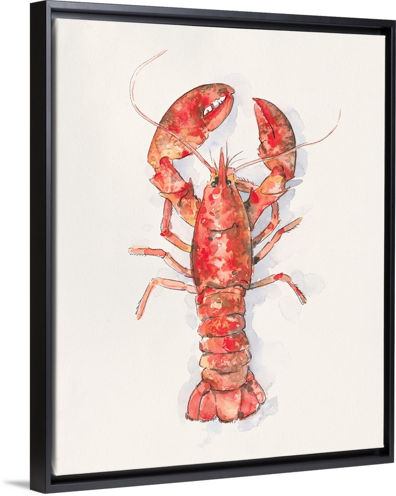 Art Coastal Emma Caroline Decorative Art Seafood Painting Red Wall Art Watercolor Wildlife Marine Life Lobster