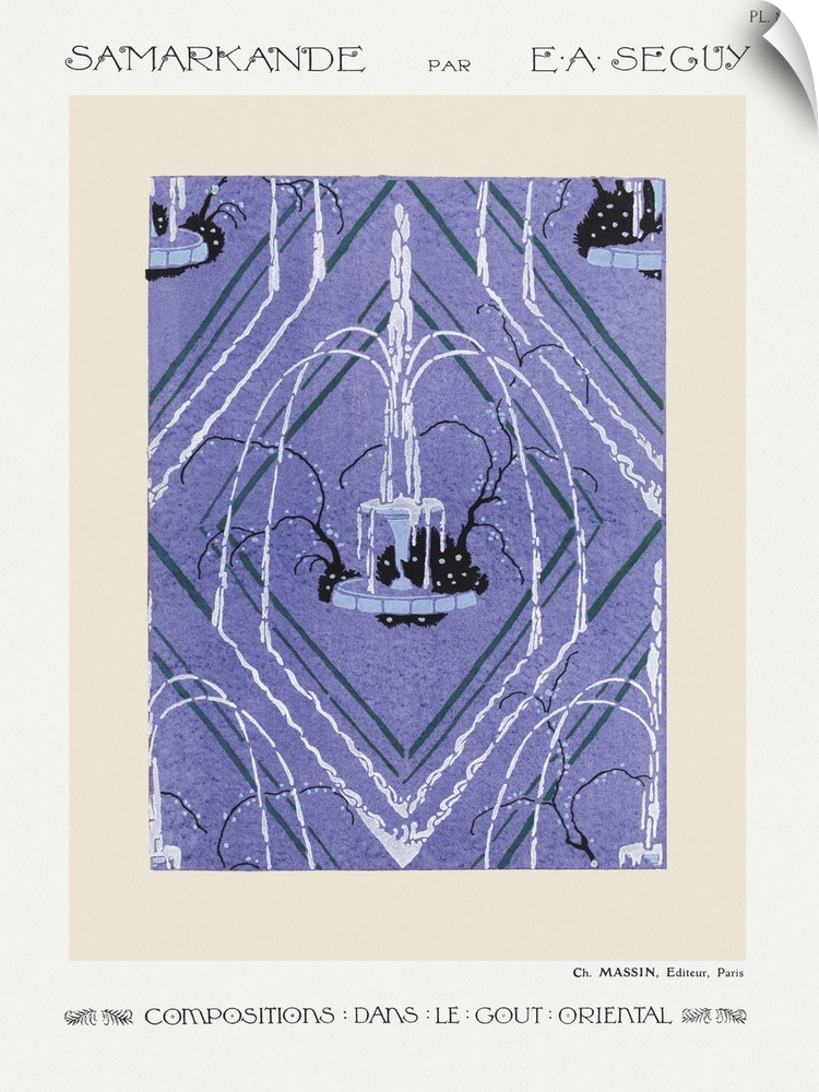 <p>Art deco fountain pattern pochoir print in oriental style.</p>
