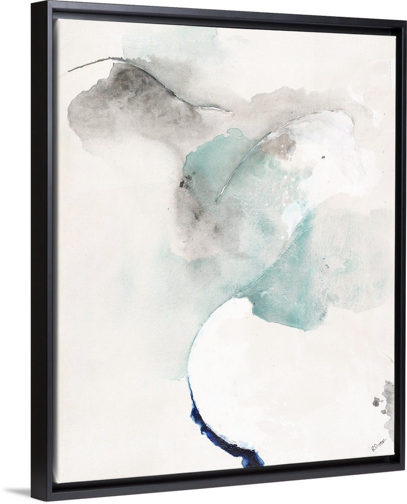 <p>Contemporary abstract painting with gray and blue hues on a white background.</p>