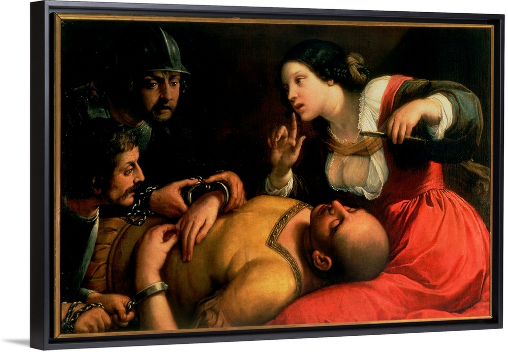 <p>XJL61192 Samson and Delilah by Caravaggio, Michelangelo (1571-1610) (follower of); oil on canvas; Hospital de Tavera, Toledo, Spain; Italian, out of copyright</p>