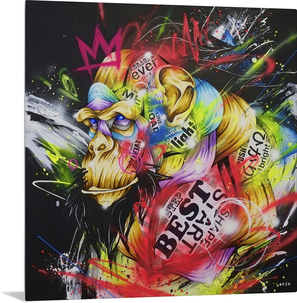 Art Eclectic Asian Art Contemporary Art Wildlife Graffiti and Street Art Painting Taka Sudo Wildlife Monkey and Ape Chimpanzee