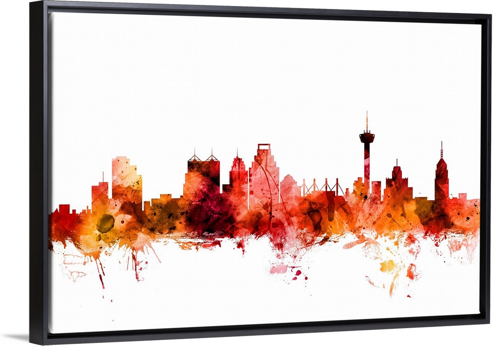 <p>Watercolor art print of the skyline of San Antonio, Texas, United States.</p>