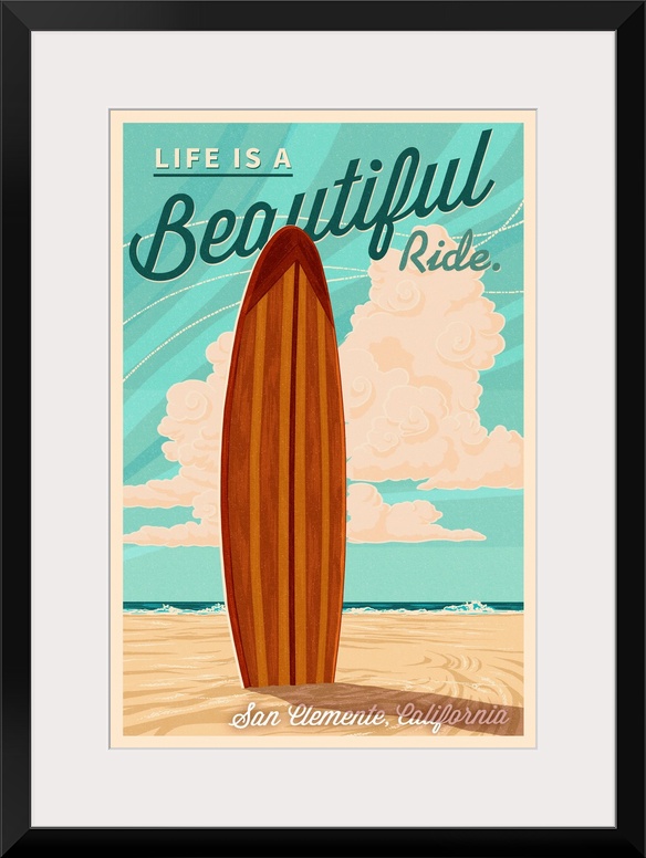 <p>San Clemente, California, Surf Board Letterpress, Life is a Beautiful Ride, Lantern Press Art</p>
