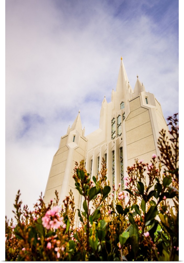 <p>The San Diego California Temple is made up of 72,000 square feet with an exterior of plaster with marble chips. The stunning white temple has two towers which are joined by a garden located in a star-shaped atrium. The temple grounds are open for visitors and contain lush green grass and a stunning array of flowers.</p>