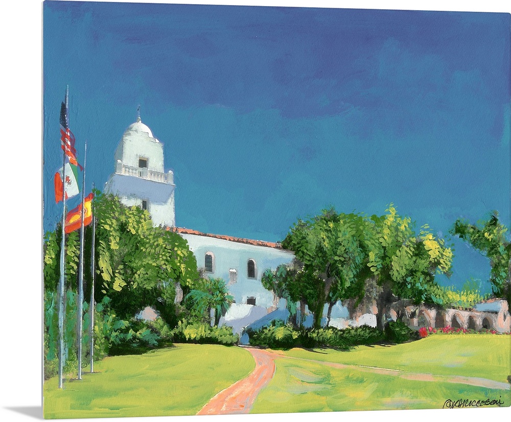 <p>The Serra Museum, San Diego painted by RD Riccoboni. Just up the hill from Old Town, at the site of the original San Diego Presidio, perched on a knowl in Presidio Park. It is built in the style of the early California Missions.</p>