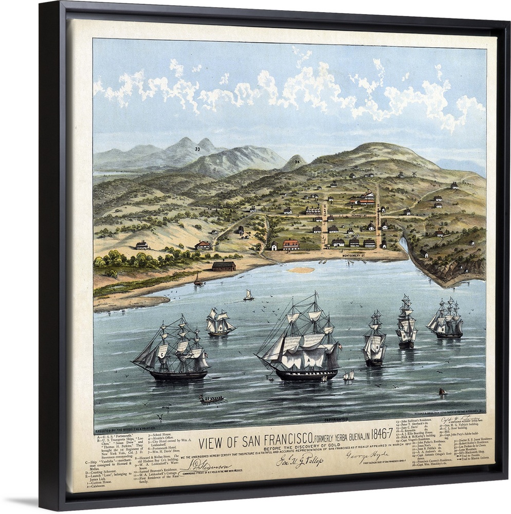 <p>San Francisco, C1847. View Of San Francisco, Formerly Yerba Buena, In 1846-7, Before the Discovery Of Gold. Lithograph, C1884.</p>