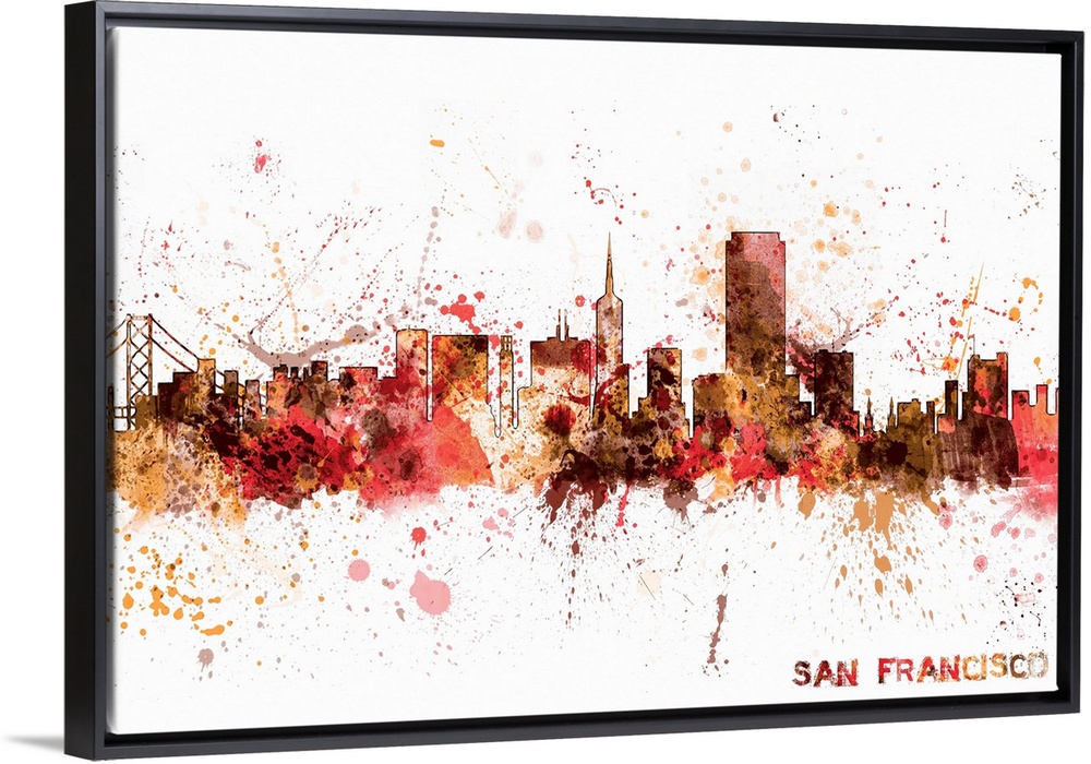 <p>Contemporary piece of artwork of the San Francisco skyline made of colorful paint splashes.</p>