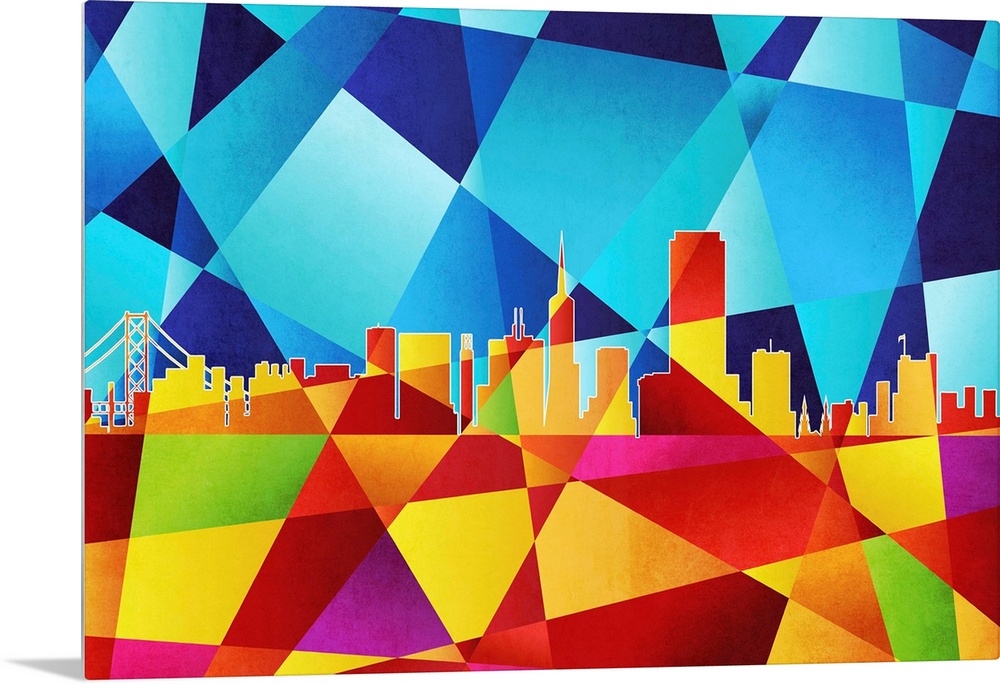 <p>Contemporary artwork of a geometric and prismatic skyline of San Francisco.</p>