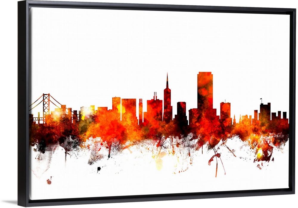 <p>Contemporary piece of artwork of the San Francisco skyline made of colorful paint splashes.</p>