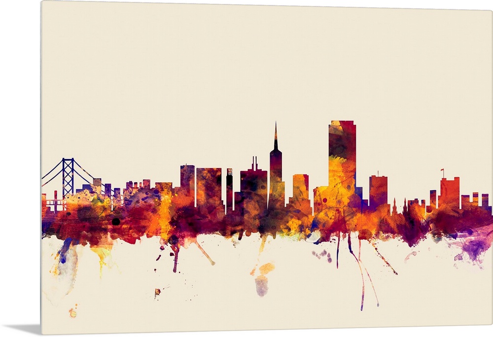 <p>Watercolor artwork of the San Francisco skyline against a beige background.</p>