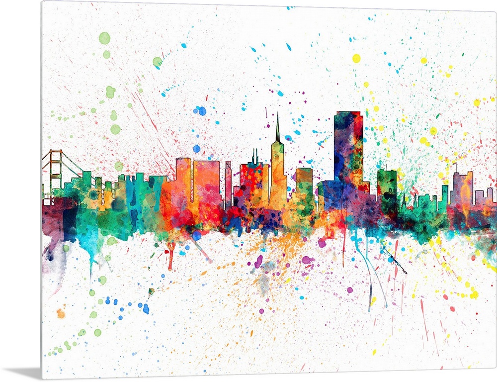<p>Wild and vibrant paint splatter silhouette of the San Francisco skyline.</p>