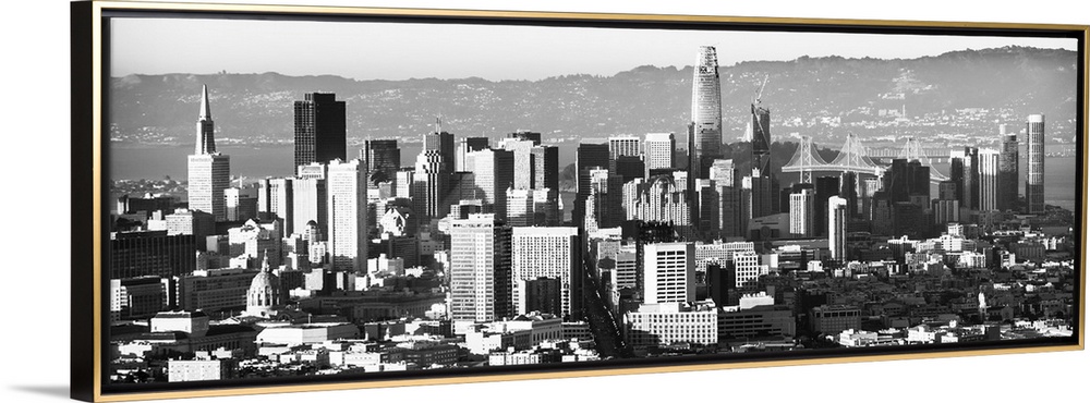 <p>Panoramic photograph of the San Francisco skyline close to sunset.</p>
