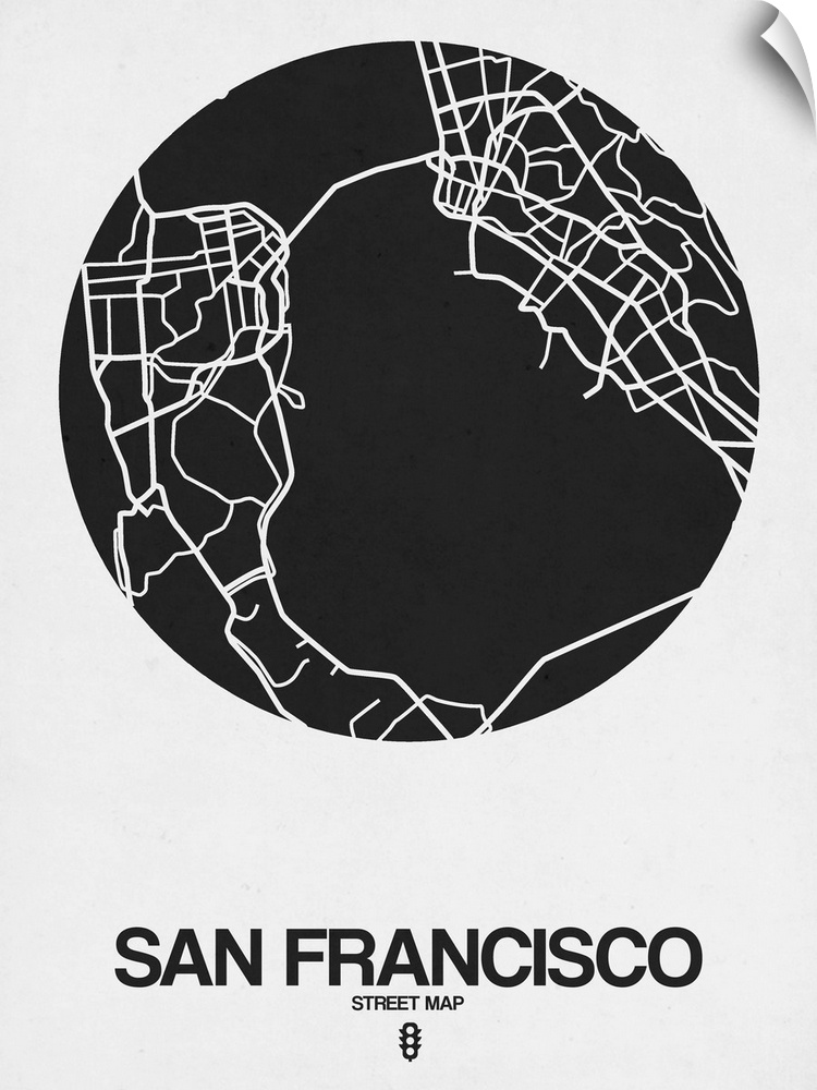<p>Minimalist art map of the city streets of San Francisco in white and black.</p>