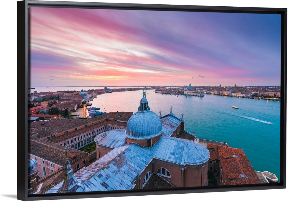<p>San Giorgio Maggiore, Venice, Veneto, Italy. High Angle View At Dusk.</p>