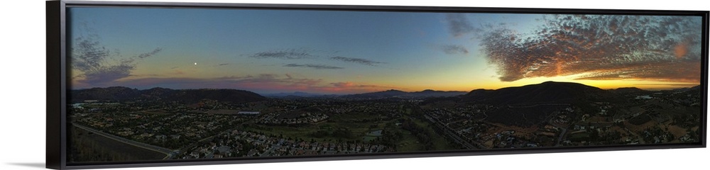 <p>Sunset Panoramic in San Marcos, California. This is a 4 image aerial panoramic capture. San Marcos is in North County San Diego, California, USA.</p>