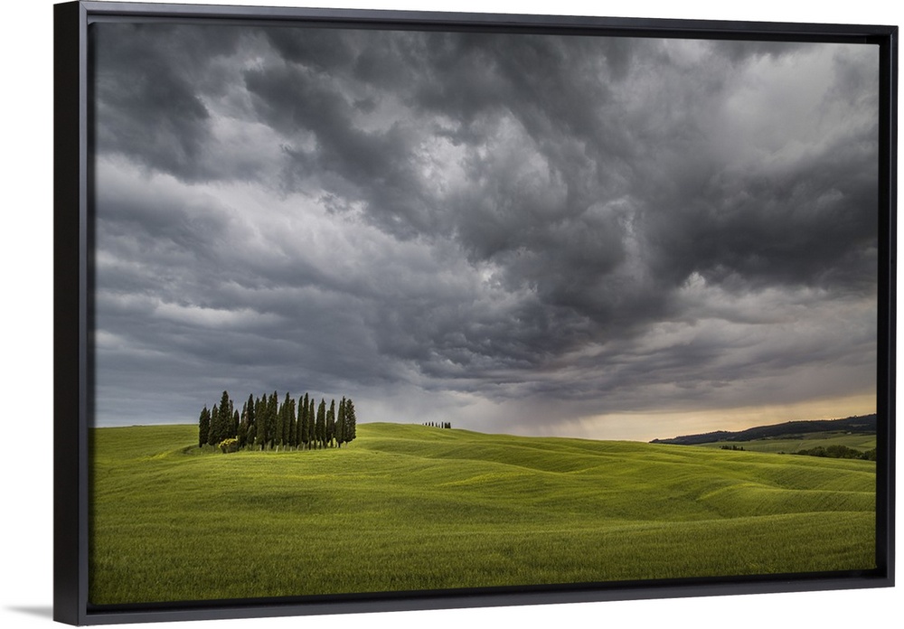 <p>San Quirico d'Orcia, Tuscany, Italy. Cypresses and stormy sky.</p>