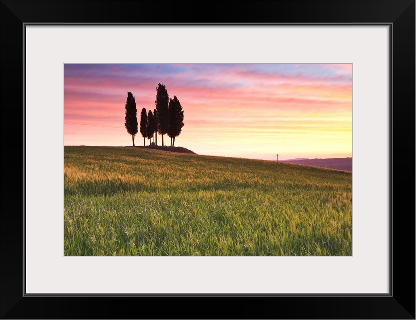 <p>San Quirico, Orcia valley, Tuscany, Italy. Cypresses at sunrise.</p>