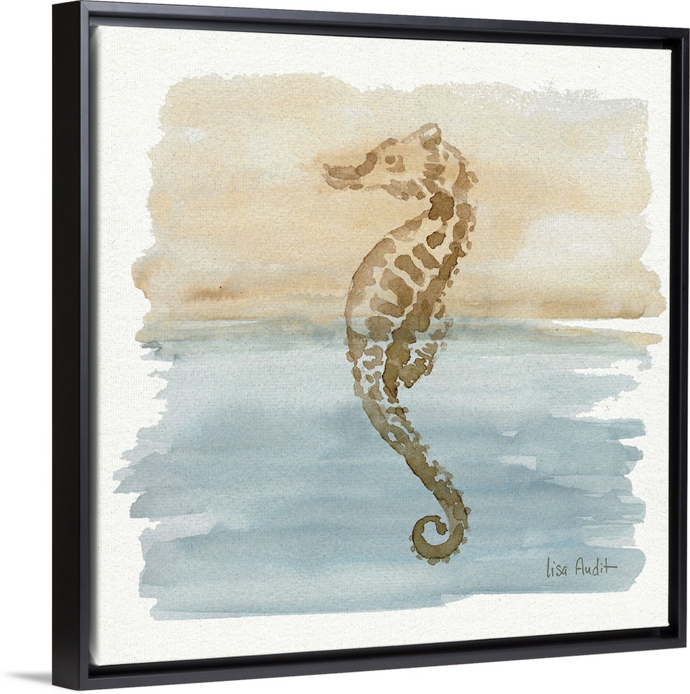 <p>Watercolor painting of a seahorse in neutral tones.</p>