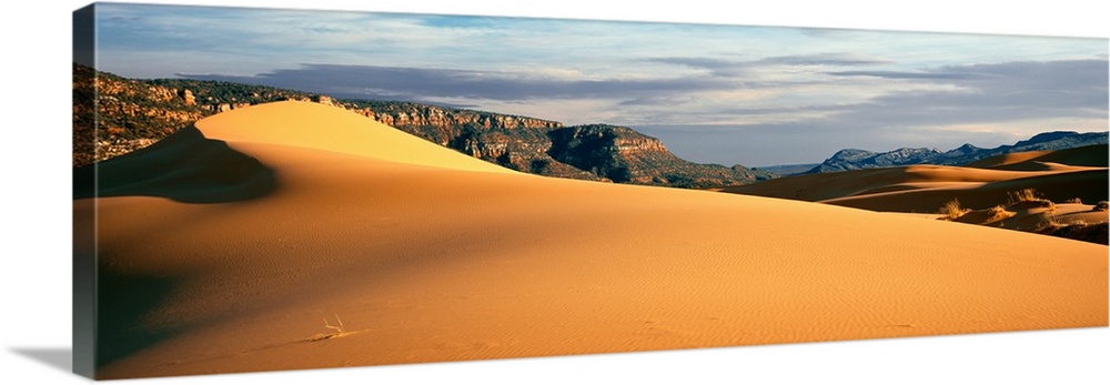 <p>Sand dunes in a desert at dusk, Coral Pink Sand Dunes State Park, Utah, USA.</p>