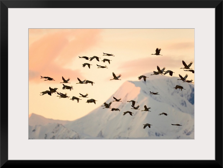 <p>Sandhill Cranes and Mt Denali at Sunrise</p>