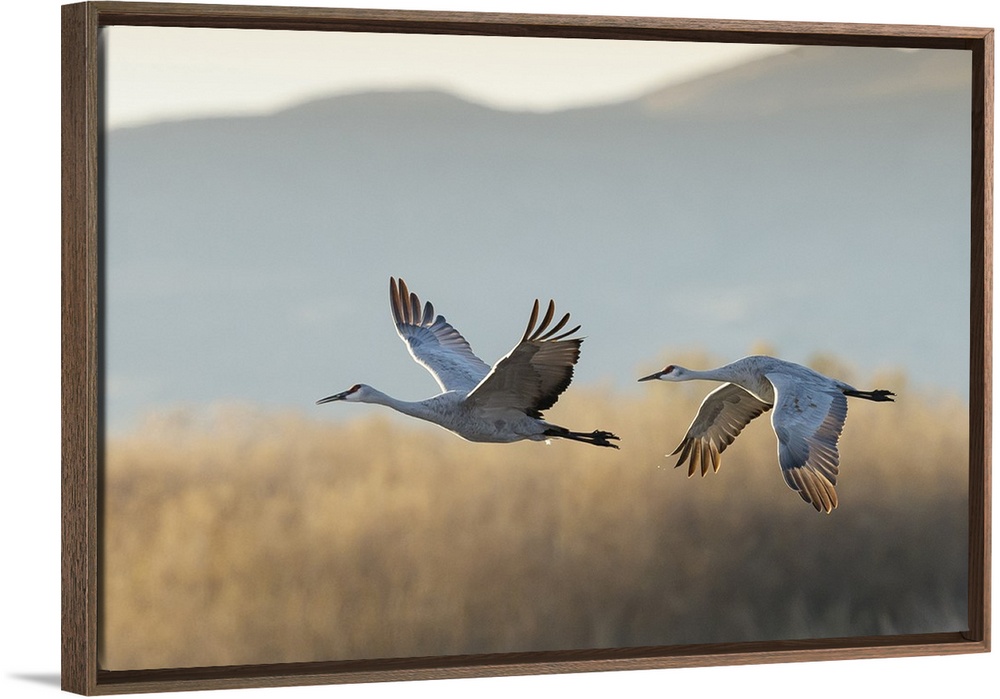 <p>Sandhill Cranes take flight, Grus canadensis, Boseque del Apache, NWR, New Mexico</p>