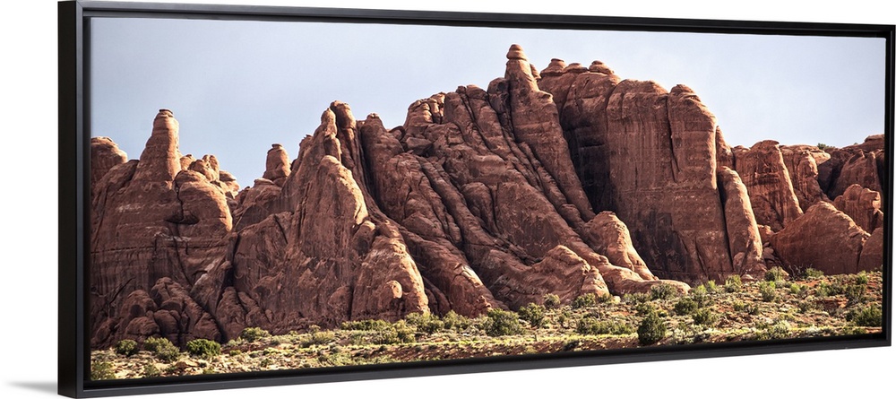 <p>Eroded sandstone fin structures in the sunlight, Arches National Park, Moab, Utah.</p>