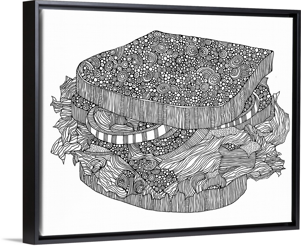 <p>Contemporary line art of of an ornately patterned sandwich against a white background.</p>