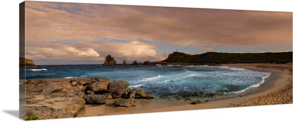 <p>Sandy beach and peninsula at Grande-Terre with the Grand-Croix in the distance at the tip of Pointe des Chateaux, Guadeloupe, French West Indies</p>