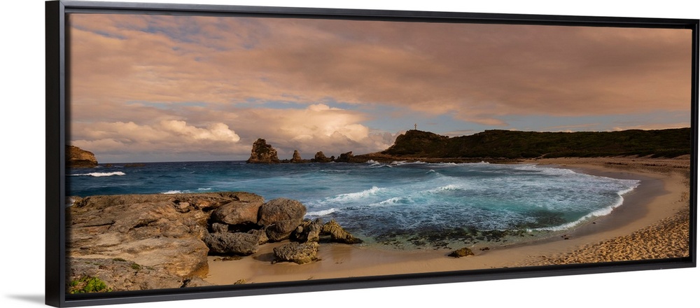 <p>Sandy beach and peninsula at Grande-Terre with the Grand-Croix in the distance at the tip of Pointe des Chateaux, Guadeloupe, French West Indies</p>