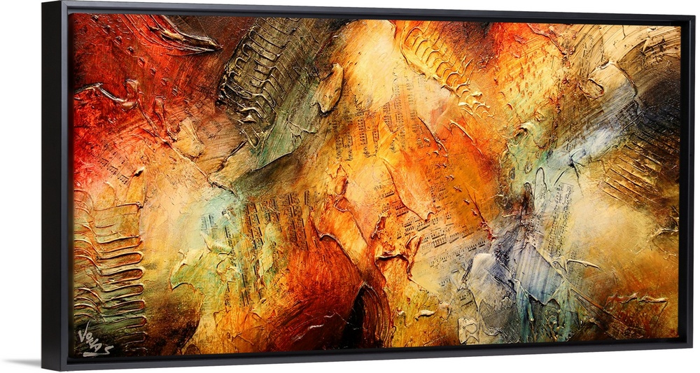 <p>Abstract painting of broad warm toned strokes layered over top of each other making raised textures in certain areas.</p>