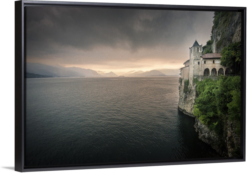 <p>Classic architecture on the side of a cliff overlooking the ocean.</p>