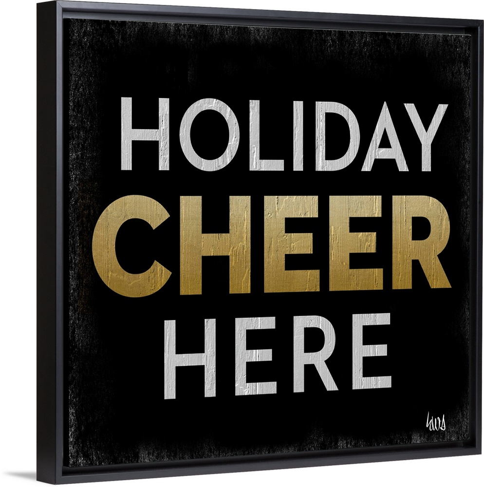 <p>"Holiday Cheer Here" on a black background with roughen edges.</p>